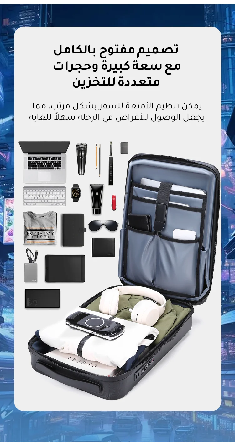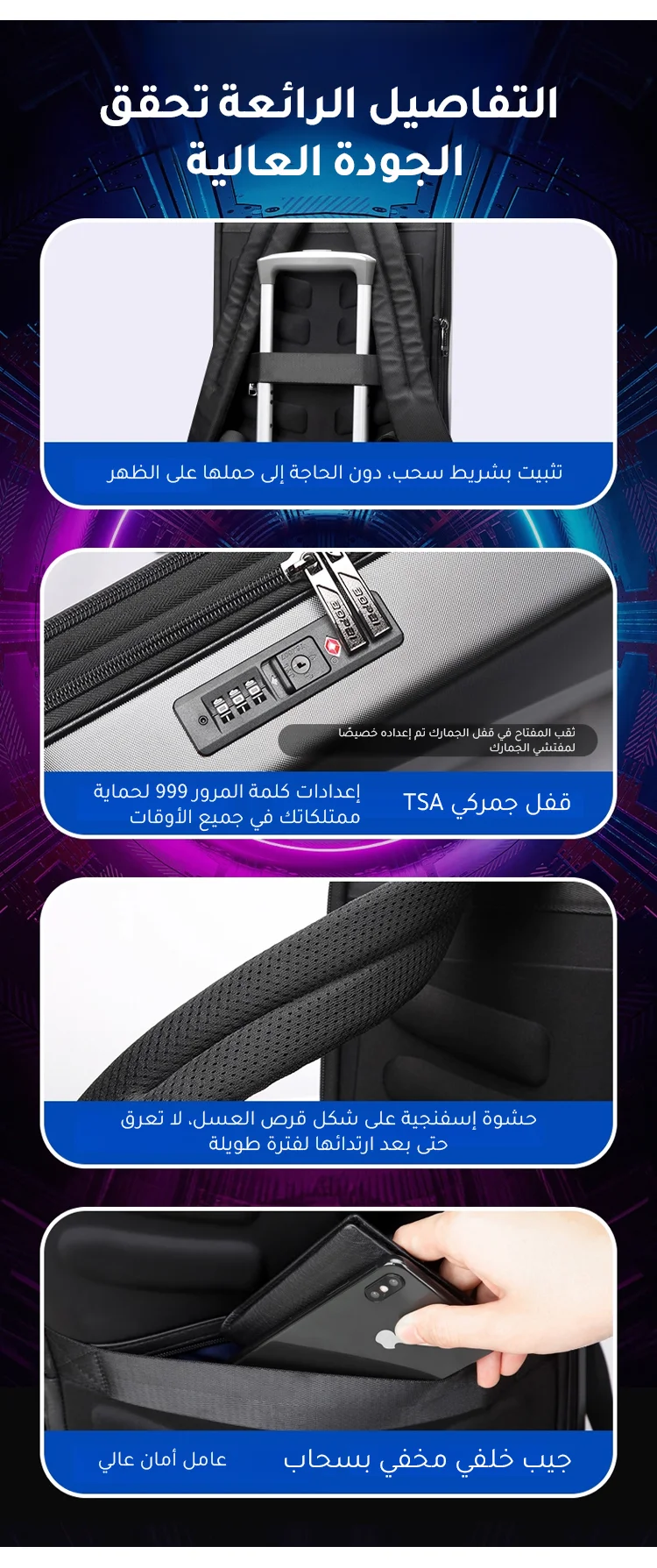 MB135 | حقيبة ظهر تكنولوجية خفيفة للكمبيوتر المحمول بقفل رقمي (مقاومة للضغط)